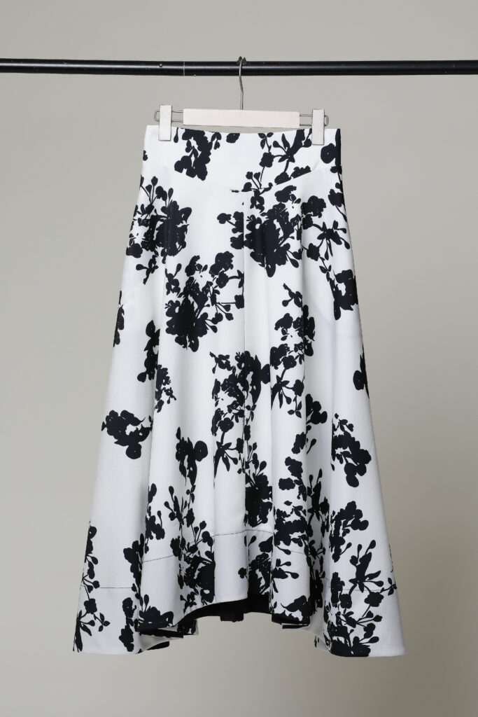 植物のシルエットを大胆かつ繊細なパターンに落とし込んだデザインスカート。発注元のアパレルブランドが掲げる「上品で洗練されたイメージ」を全面で表現しています。ウエスト部分にゴムを採用して良好な履き心地を確保しつつ、背面にファスナーを配置することで、身体のラインを美しく引き立てるスマートな構造。裾の長さに変化をつけたアシンメトリーなヘムデザインも、歩くたびに軽やかでドラマチックな広がりを演出します。