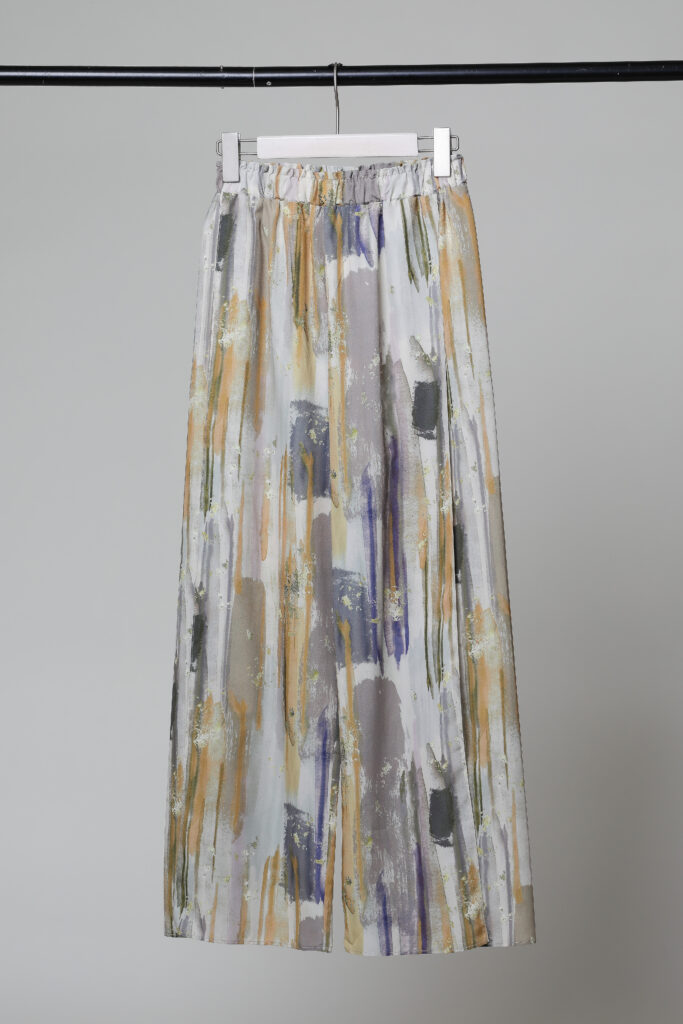 アパレルブランドA様からの「個性的かつ季節感のある一着を」という要望で制作したこだわりのスカート。独創的なアート柄を採用し、洗練された大人の遊び心を表現しました。使用した柔らかな生地は、足を運ぶたびにしなやかで優雅な揺れ感を表現。季節の移ろいに溶け込むような表情を演出します。柄の配置から素材の選定に至るまで、ミリ単位でこだわり抜いたスカートです。