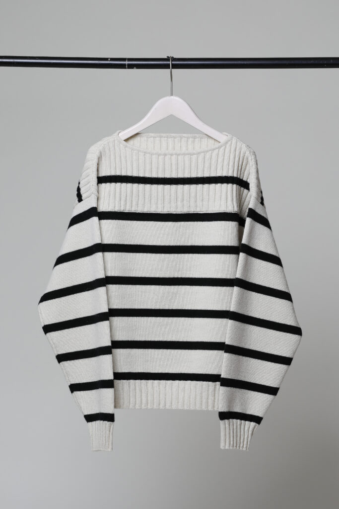 寒い季節にぴったりの温もりあふれるニットトップス。アパレルブランドO様の新作として制作された一着です。全体的にゆとりを持たせたルーズなシルエットを採用することで、現代風のリラックス感のある着こなしを実現。首元は顔まわりをすっきりと見せるUネックとしています。胸元と裾で編み地を切り替えるという細やかな意匠を凝らすなど、シンプルさの中に小粋なアクセントも光ります。